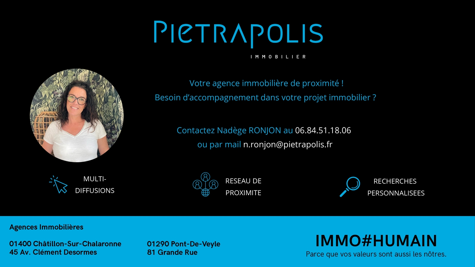 Nous sommes heureux de vous présenter notre nouvelle partenaire de la saison : Nadège RONJON, agent commerciale en immobilier chez PIETRAPOLIS CHATILLON-SUR-CHALARONNE. 𝐔𝐧𝐞 𝐩𝐞𝐭𝐢𝐭𝐞 𝐩𝐫𝐞́𝐬𝐞𝐧𝐭𝐚𝐭𝐢𝐨𝐧 ? “Agent commerciale en immobilier depuis bientôt sept ans chez PIETRAPOLIS CHATILLON SUR CHALARONNE, je vous accompagne avec passion dans l’achat, la vente et l’estimation de vos biens. Mon engagement ? Vous offrir un service de proximité, personnalisé et transparent en mettant à profit ma connaissance approfondie du marché Immobilier sur VONNAS et ses environs. Je suis votre écoute pour concrétiser vos projets dans les meilleures conditions. Contactez moi et avançons ensemble vers votre réussite immobilière.” 🙏 Un grand merci à Nadège pour son soutien qui contribue à la vie de notre club !